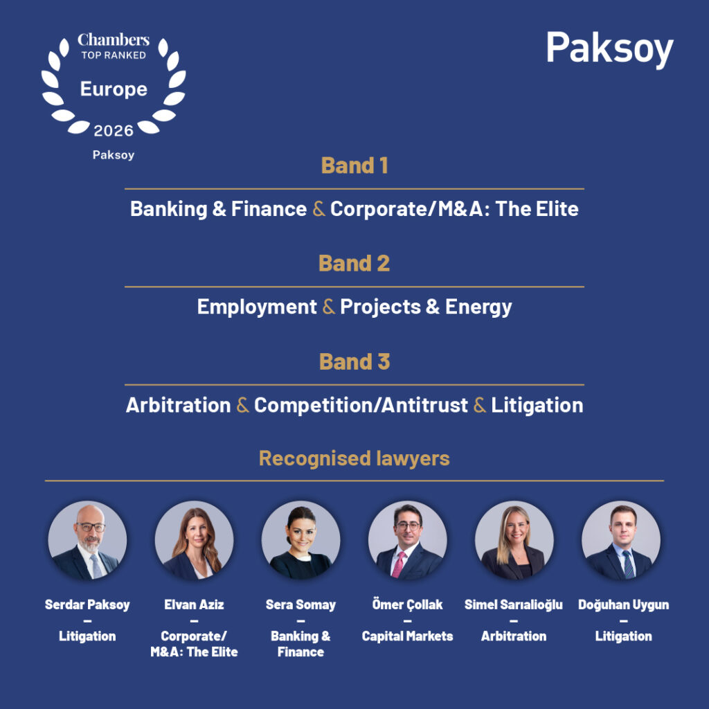 Chambers Europe Guide 2026’da hukuk büromuz ve avukatlarımızın bir kez daha en üst seviyede yer almasından memnuniyet duyuyoruz.