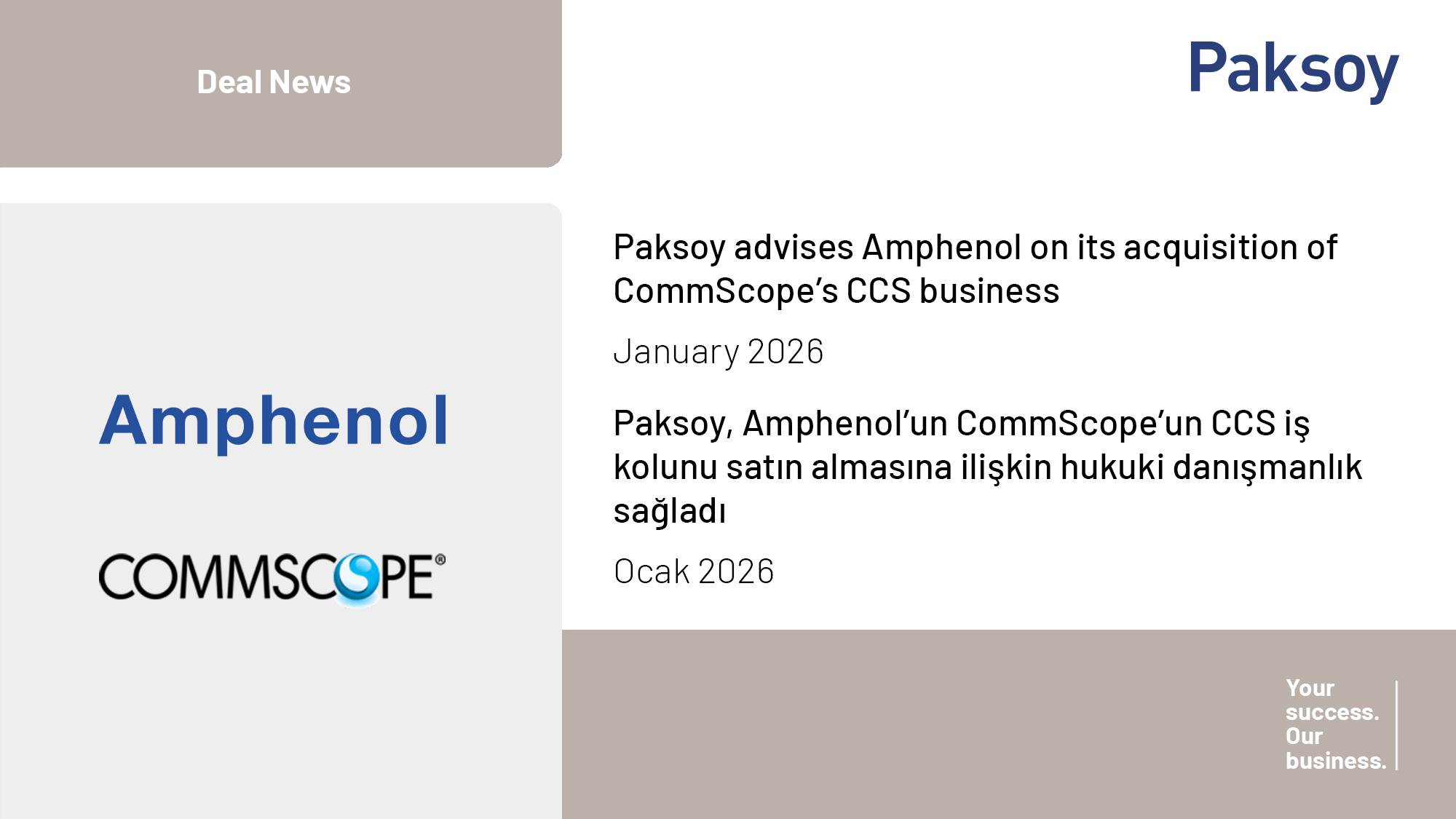 Paksoy, Amphenol’un CommScope’un CCS iş kolunu satın almasına ilişkin hukuki danışmanlık sağladı