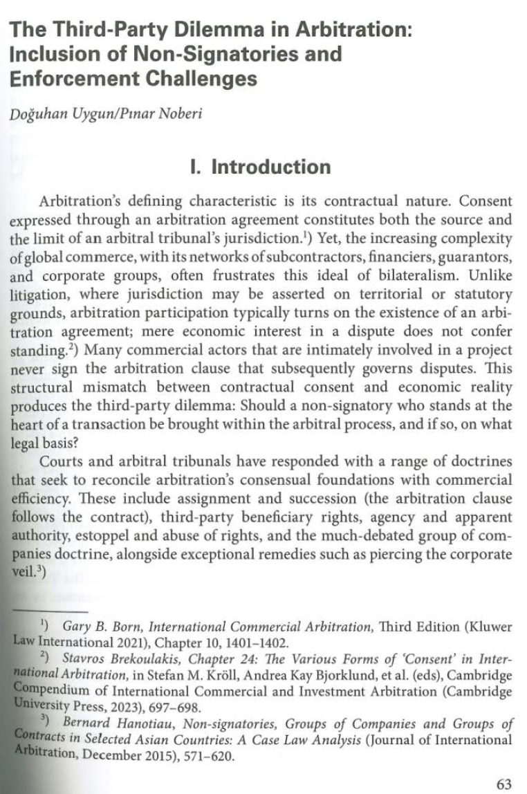 We are pleased to announce that Doğuhan Uygun, partner, and Pınar Noberi, associate, have contributed to the Austrian Yearbook on International Arbitration 2026 with their article titled “The Third-Party Dilemma in Arbitration: Inclusion of Non-Signatories and Enforcement Challenges.”