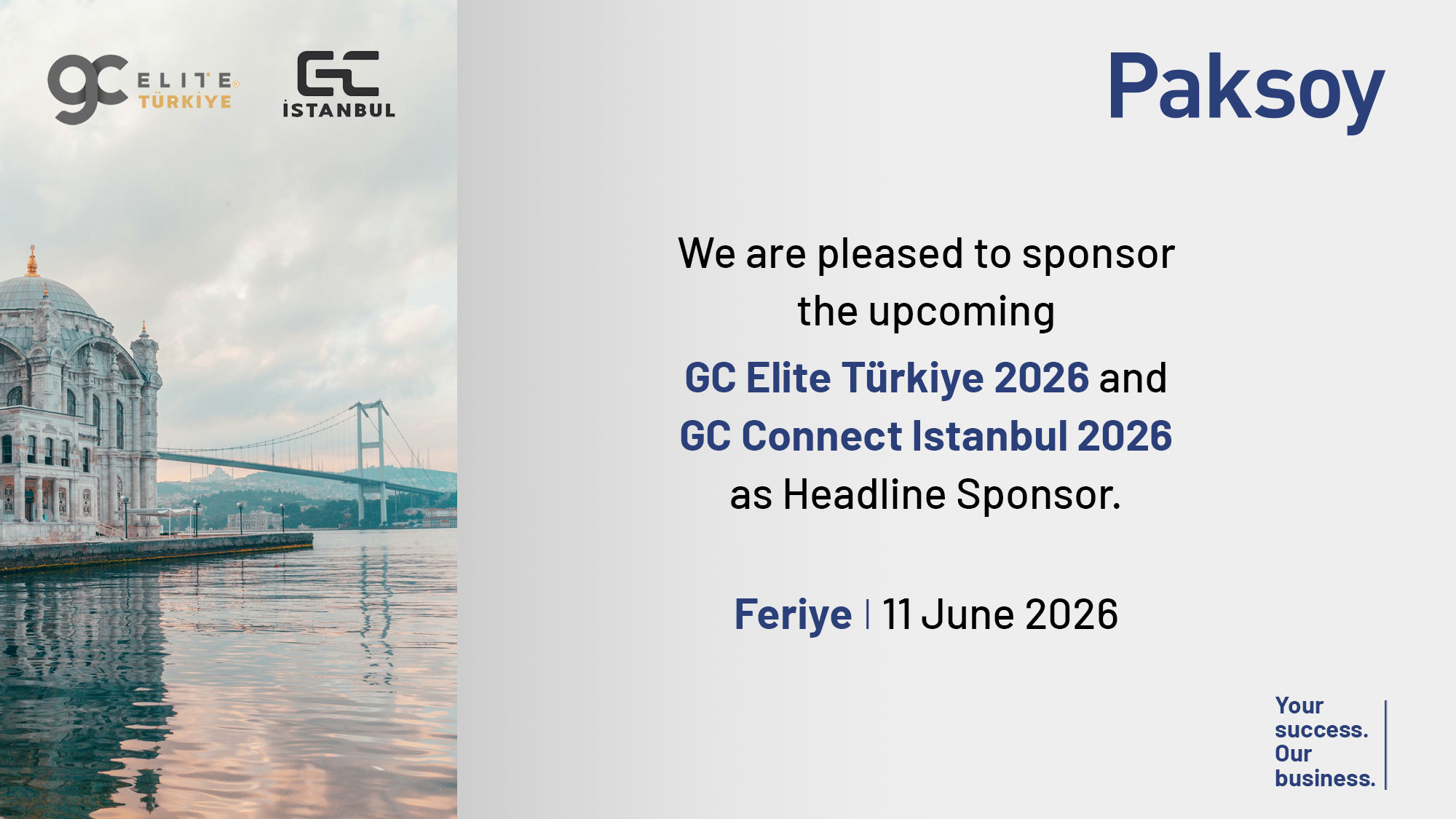 We are pleased to sponsor the upcoming GC Elite Türkiye 2026 and GC Connect Istanbul 2026 as Headline Sponsor.