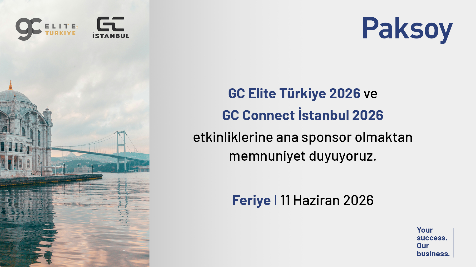 GC Elite Türkiye 2026 ve GC Connect İstanbul 2026 etkinliklerine ana sponsor olmaktan memnuniyet duyuyoruz.